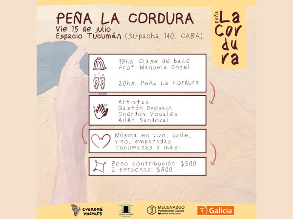 Peña La Cordura. Primera edición. Viernes 15/7 – 19hs