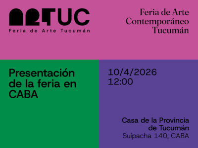 ArTuc - Feria de Arte Contemporáneo Tucumán - se presentará en CABA el viernes 10 de abril en la Casa de la Provincia de Tucumán. El lanzamiento contará con la presencia de Juan Grande y Fredesvinda Denis, directores generales de [...]